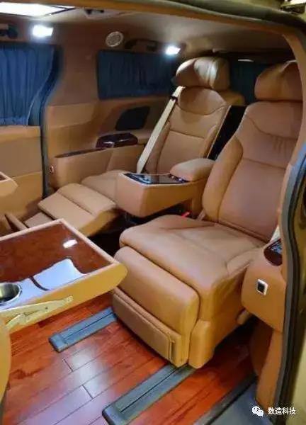 另外,在第二排豪华CEO座椅的中间,定制了一个多动能中道扶手箱,上部是汽车音响系统总控主机及ipad mini的充电平托,下部为可以电动推出的雀巢胶囊咖啡机。前部隔断吧台上定制的两个可以折叠的桌板,顶部隔栅灯光系统则为车主提供了商用办公功能,发烧级德国海螺汽车音响系统则为爱音乐的车主提供了旅途中的优雅视听感受。